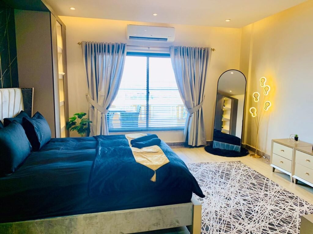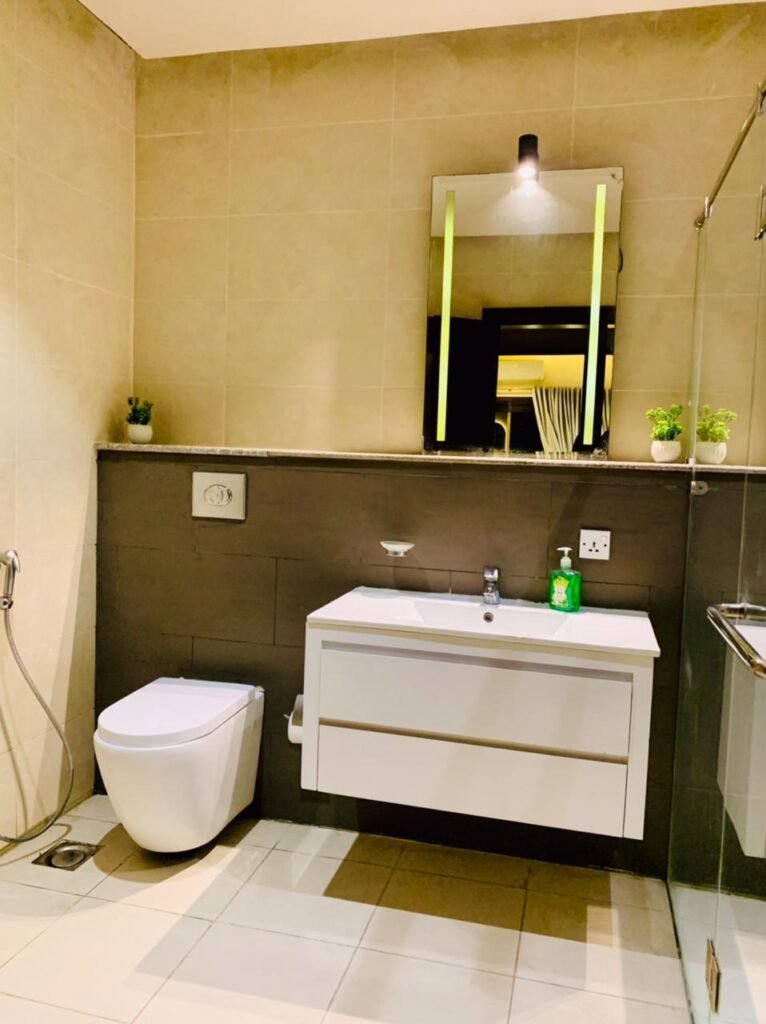 Enjoy a stay in this Elegant and Comfortable Space. The Bedroom Features a Large, Soft Bed with High-quality sheets to Ensure a Great night’s sleep. Right next to it is a private TV lounge, Perfect for relaxing. It has a Comfortable Sofa and a Large Flat-screen TV, making it the Best spot to watch your favorite Movies.