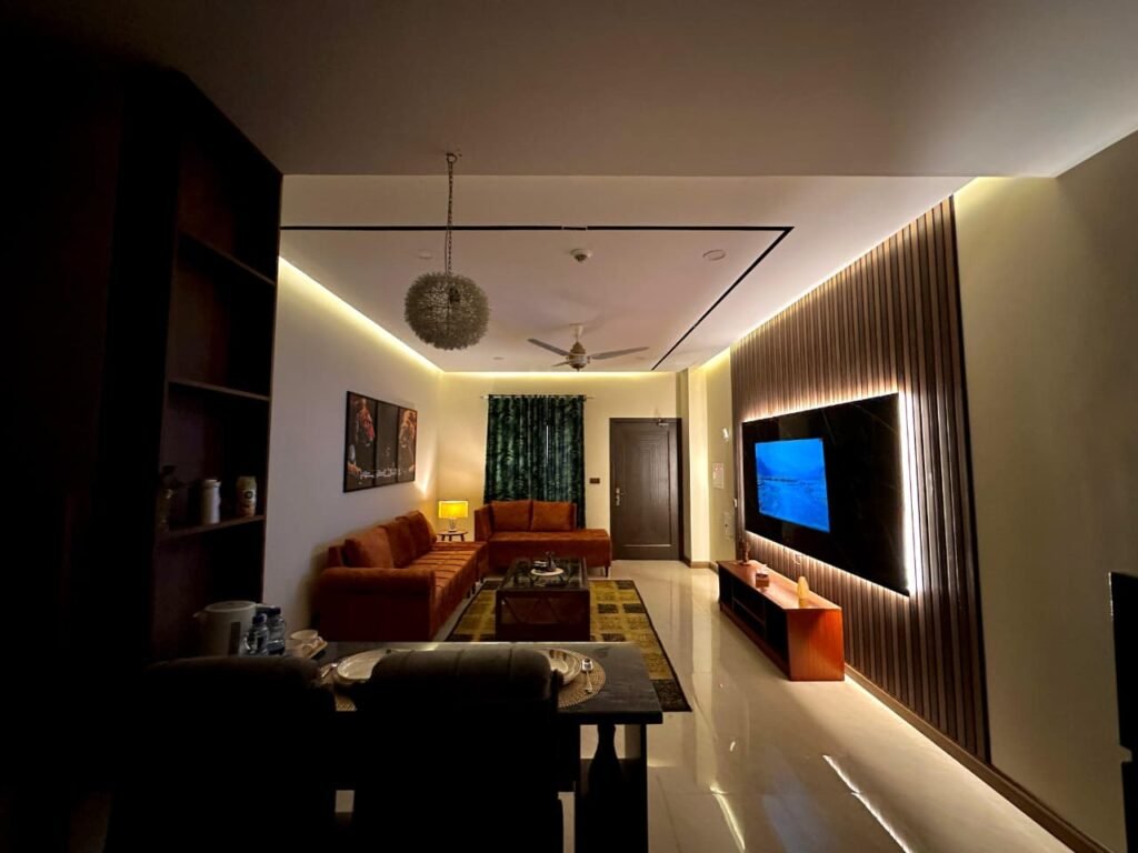 Enjoy a stay in this Elegant and Comfortable Space. The Bedroom Features a Large, Soft Bed with High-quality sheets to Ensure a Great night’s sleep. Right next to it is a private TV lounge, Perfect for relaxing. It has a Comfortable Sofa and a Large Flat-screen TV, making it the Best spot to watch your favorite Movies.