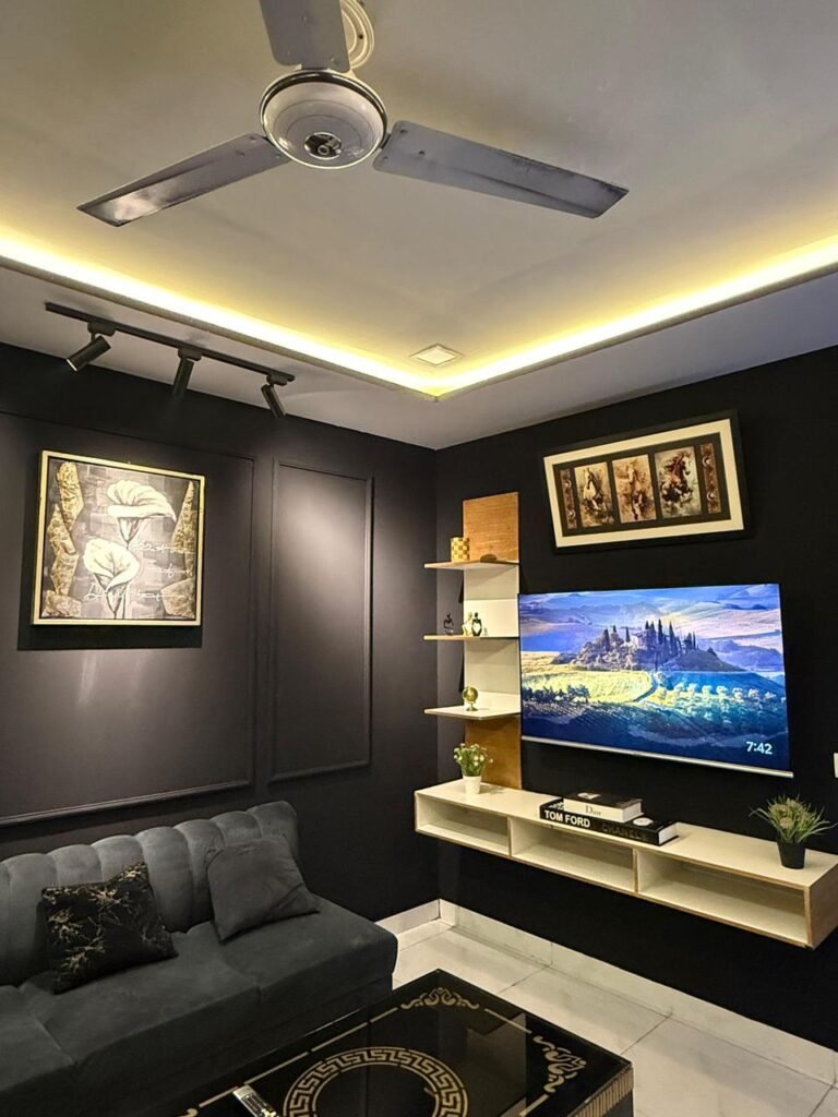 Enjoy a stay in this Elegant and Comfortable Space. The Bedroom Features a Large, Soft Bed with High-quality sheets to Ensure a Great night’s sleep. Right next to it is a private TV lounge, Perfect for relaxing. It has a Comfortable Sofa and a Large Flat-screen TV, making it the Best spot to watch your favorite Movies.