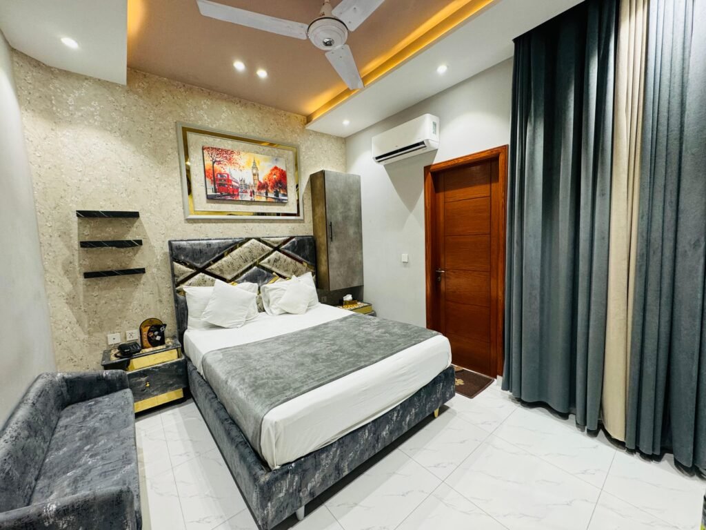 Upgrade your stay in our 1 Bed Standard Room, offering enhanced comfort and a touch of luxury. This room features elegant furniture, a spacious layout, a private washroom, and all modern amenities. Guests can enjoy and start their day fresh and energized.