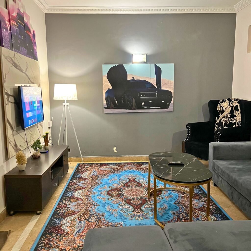Enjoy a stay in this Elegant and Comfortable Space. The Bedroom Features a Large, Soft Bed with High-quality sheets to Ensure a Great night’s sleep. Right next to it is a private TV lounge, Perfect for relaxing. It has a Comfortable Sofa and a Large Flat-screen TV, making it the Best spot to watch your favorite Movies.